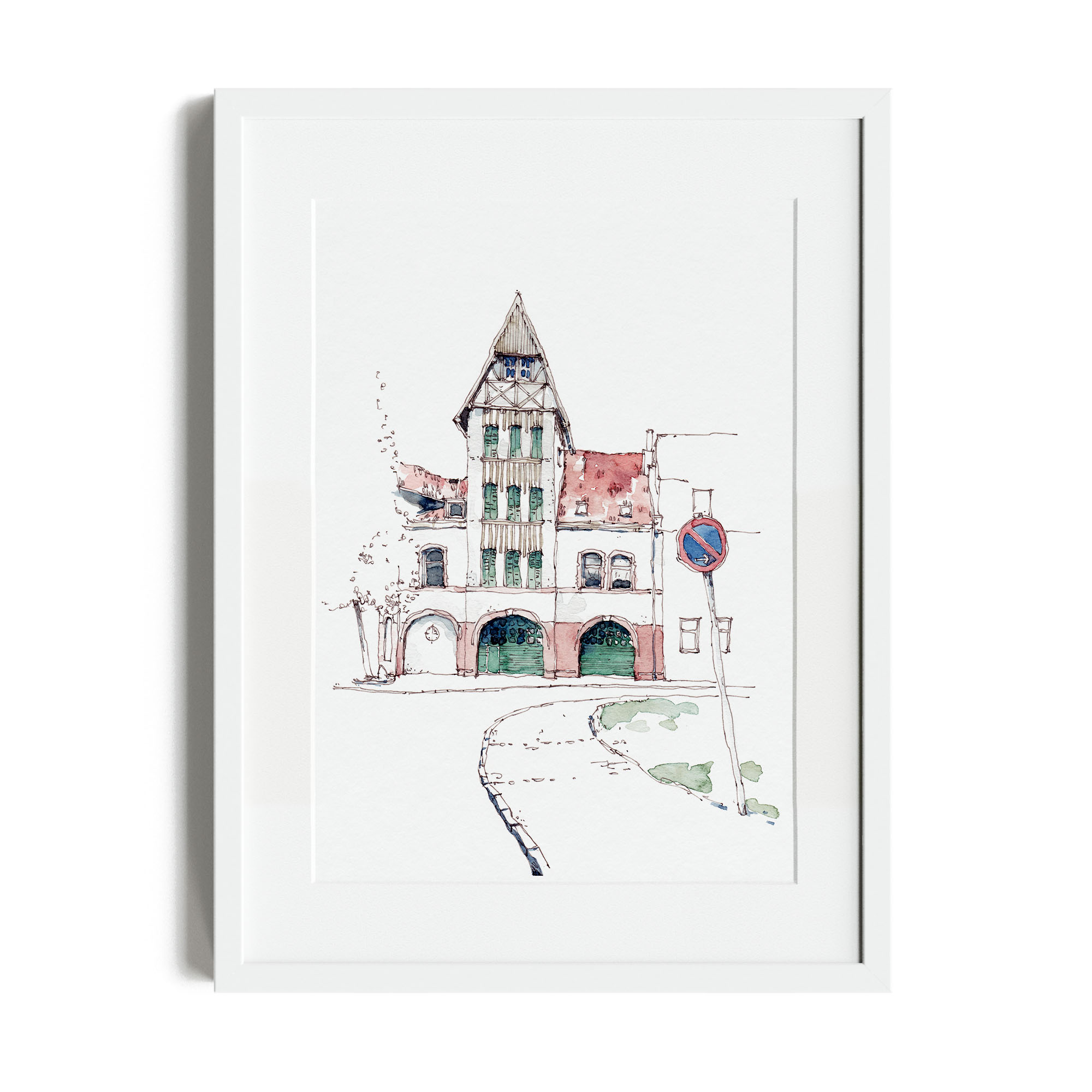 Originalzeichnung*: Tinte auf Aquarellpapier, 21 x 28 cm